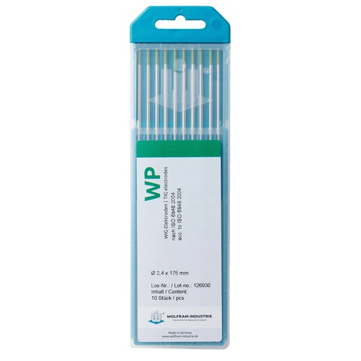 Tungsten elekctrodes WP 2,0 x 150mm 10 pieces