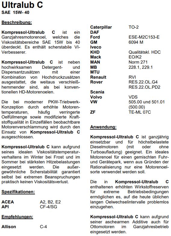 ACEA A3, B3, E2, API SJ/CF, CF-4/CG-4, MAN 271, MB 227.1, 228.1, 229.1, VW505 01 u. 505 00